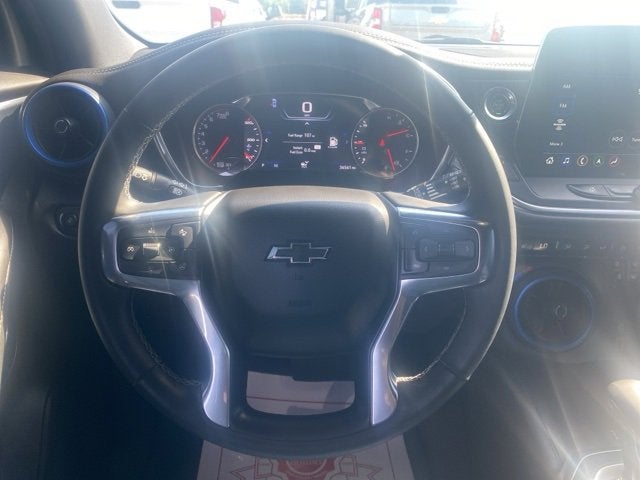 ** Alloy Wheels / Premium Wheels, ** Bluetooth®, Hands Free, ** Cruise Control, ** Keyless Entry, ** Premium Sound System / Premium Audio, ** Satellite Radio, ** Steering Wheel Controls, 3.49 Final Drive Axle Ratio, 4-Wheel Disc Brakes, 6-Way Power Front Passenger Seat Adjuster, 8 Speakers, 8-Way Power Driver Seat Adjuster, ABS brakes, Adaptive Cruise Control, Air Conditioning, Alloy wheels, AM/FM radio: SiriusXM with 360L, Apple CarPlay/Android Auto, Auto High-beam Headlights, Auto-dimming door mirrors, Auto-dimming Rear-View mirror, Automatic temperature control, Bose Premium 8-Speaker Audio System Feature, Brake assist, Bumpers: body-color, Child-Seat-Sensing Airbag, Compass, Delay-off headlights, Driver Confidence II Package, Driver door bin, Driver vanity mirror, Dual front impact airbags, Dual front side impact airbags, Electronic Stability Control, Emergency communication system: OnStar and Chevrolet connected services capable, Enhanced Automatic Emergency Braking, Enhanced Convenience Package, Four wheel independent suspension, Front anti-roll bar, Front Bucket Seats, Front Center Armrest, Front dual zone A/C, Front reading lights, Fully automatic headlights, Garage door transmitter, HD Surround Vision, Heated door mirrors, Heated Driver & Front Passenger Seats, Heated front seats, Heated Rear Outboard Seating Positions, Heated Steering Wheel, Heated steering wheel, Illuminated entry, Knee airbag, Leather Shift Knob, Leather steering wheel, Low tire pressure warning, Memory Settings For Driver Seat & Exterior Mirrors, Navigation System, Occupant sensing airbag, Outside temperature display, Overhead airbag, Overhead console, Panic alarm, Passenger door bin, Passenger vanity mirror, Perforated Leather-Appointed Seat Trim, Power door mirrors, Power Driver Lumbar Control, Power driver seat, Power Liftgate, Power passenger seat, Power steering, Power Tilt & Telescoping Steering Column, Power windows, Preferred Equipment Group 1RS, Premium audio system: Chevrolet Infotainment 3 Premium, Radio data system, Radio: Chevrolet Infotainment 3 Premium System, Rear anti-roll bar, Rear Camera Mirror, Rear Camera Mirror Washer, Rear reading lights, Rear seat center armrest, Rear window defroster, Rear window wiper, Remote keyless entry, Ride & Handling Suspension, Safety Alert Seat, Security system, SiriusXM w/360L, Speed control, Speed-sensing steering, Split folding rear seat, Spoiler, Steering wheel mounted audio controls, Tachometer, Telescoping steering wheel, Tilt steering wheel, Traction control, Trip computer, Turn signal indicator mirrors, Variably intermittent wipers, Ventilated Driver & Front Passenger Seats, Voltmeter, Wheels: 20 Technical Gray Aluminum. Recent Arrival! Black 2024 Clean CARFAX. Chevrolet Blazer 4D Sport Utility RS 3.6L V6 SIDI 9-Speed Automatic with Overdrive FWD